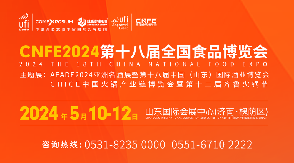 CNFE2024第十八屆全國(guó)食品博覽會(huì)將于2024年5月10日-12日在濟(jì)南市山東國(guó)際會(huì)展中心(槐蔭區(qū))盛大舉辦。【主題展:AFADE2024亞洲名酒展暨第十八···